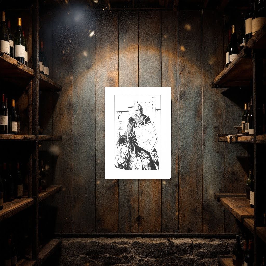 Questa splendida raffigurazione Di un Cavaliere Errante ci porta nel Medioevo, dove la fanteria pesante aveva un alto lignaggio nell’esercito. Da questo scenario prende coscienza chi beve un vino con questa etichetta, che trasmette l’idea di un vino importante, appunto di alto lignaggio.